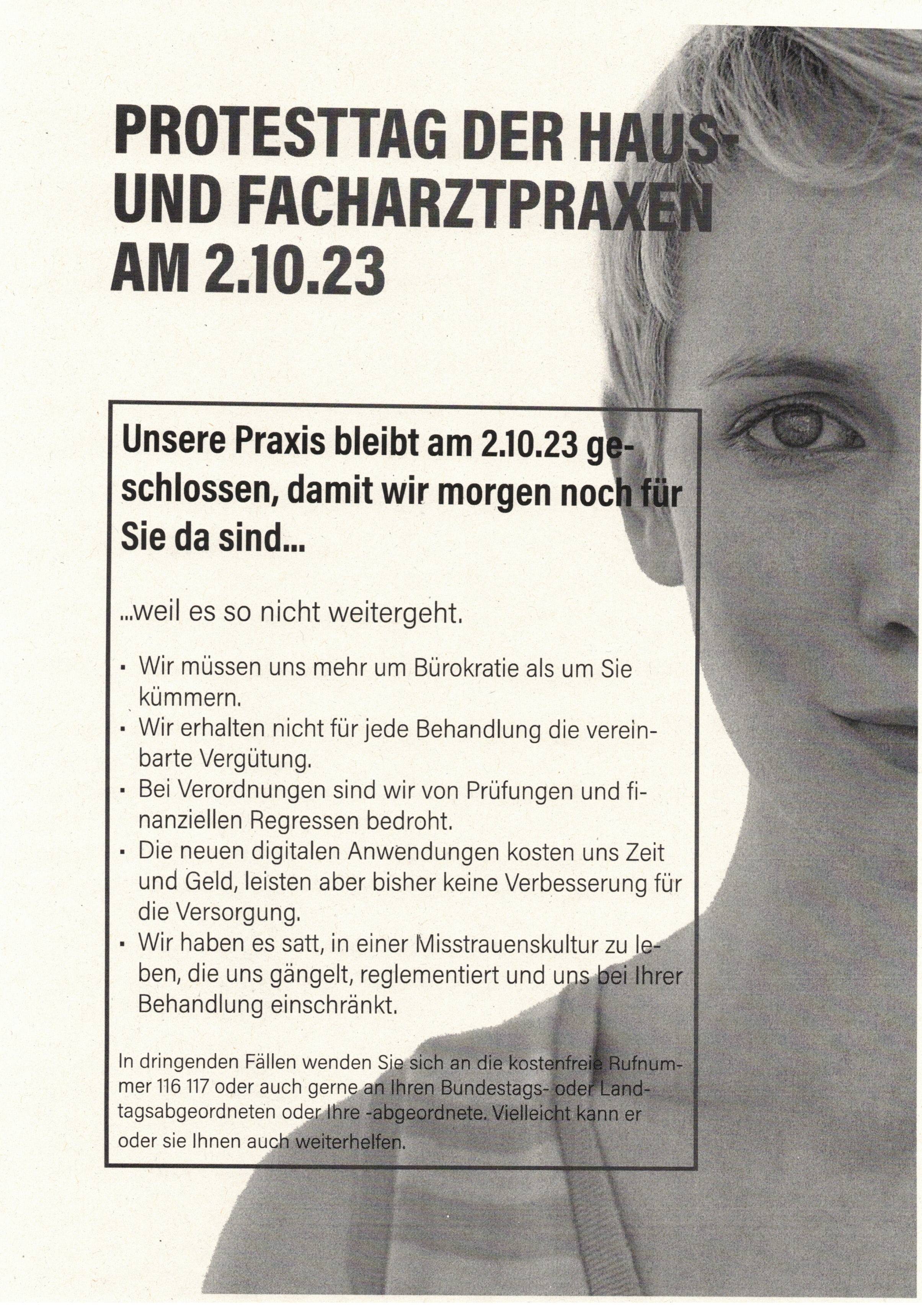 2.10.23: Nationaler Protesttag der Haus-und Facharztpraxen!